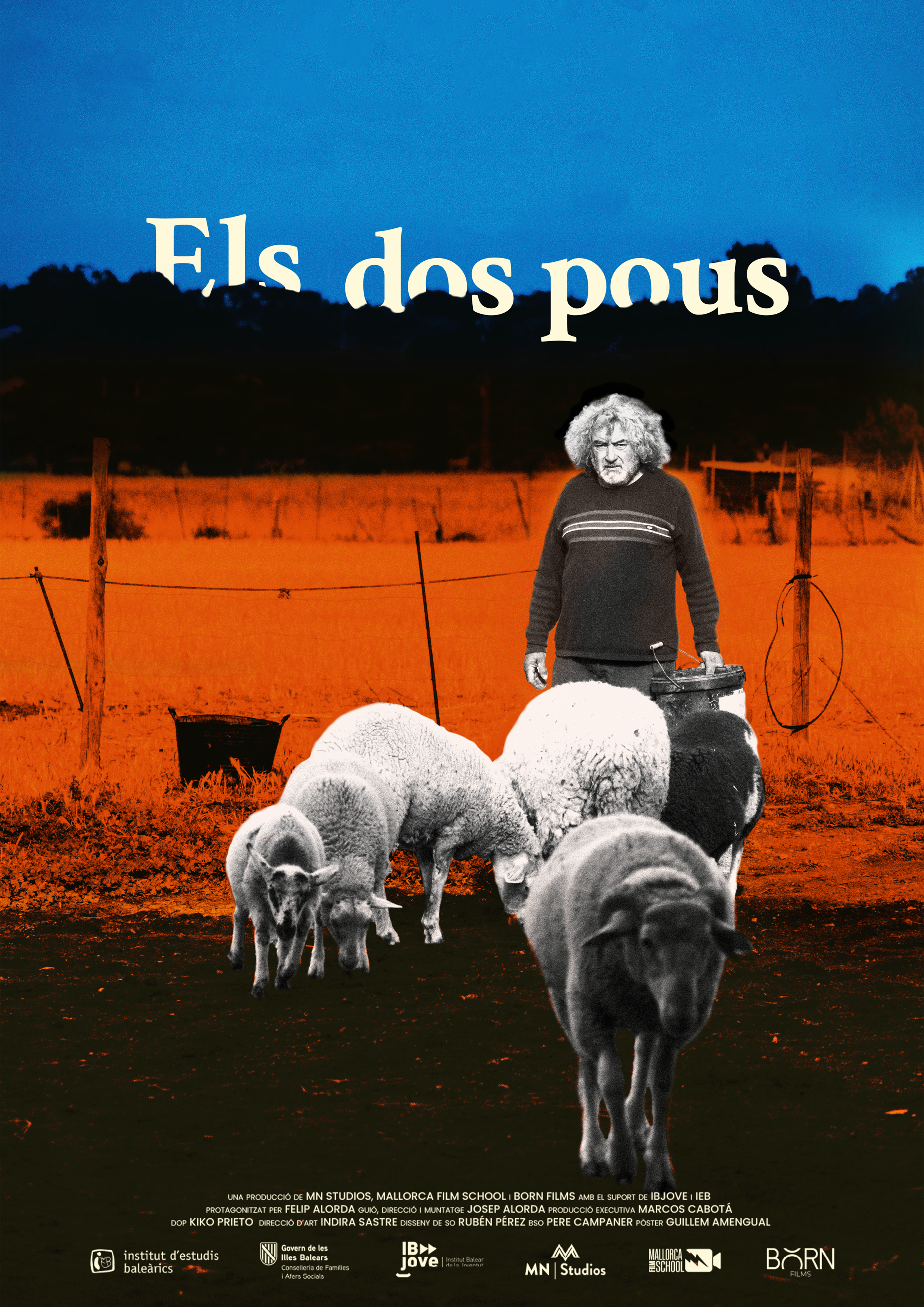 Felip, un pagès mallorquí de 63 anys, viu reclòs en una antiga granja. La seva vida, aparentment senzilla i silenciosa, amaga un passat que encara supura. A mesura que es revelen els senyals d’abandonament de l’espai que habita —pols, brutícia, desordre— també s’imposa una atmosfera carregada i densa que ens condueix al record d’un accident tràgic que va marcar per sempre la seva existència. Una família que passa en bicicleta, una rutina interrompuda, un malson… Tot el porta, una vegada més, fins al pou, l’escenari simbòlic del seu trauma. Però el passat no se’n va. I en Felip, tampoc. Encara atrapat en la memòria, ferit però dempeus, continua dins del seu bucle. Els dos pous és una mirada íntima i visualment contemplativa sobre el dol, la culpa i la persistència, ambientada en el món rural més cru i real.