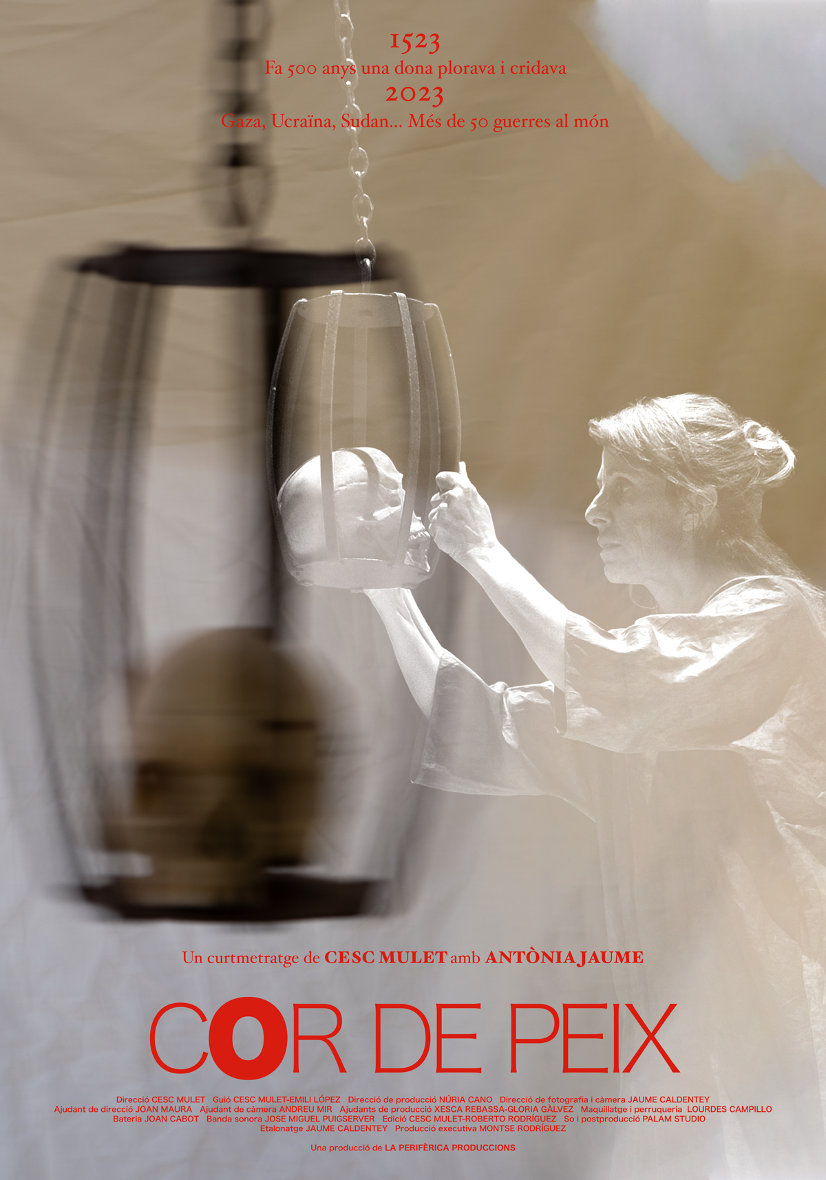 Fa cinc-cents anys una dona plorava i cridava. Som al 1523. Margalida Arbona esposa de Joanot Colom crida desesperada. Què ha passat perquè el seu marit fos ajusticiat, esquarterat i degollat. Com pot refer-se? A ella li agradava netejar el peix amb l'aigua del mar i les seves llàgrimes també són salades. Avui, quantes dones des de l'Afganistan al Sahel criden? A Gaza, Ucraïna o Sudan... més de 50 conflictes rompen la pau del món.